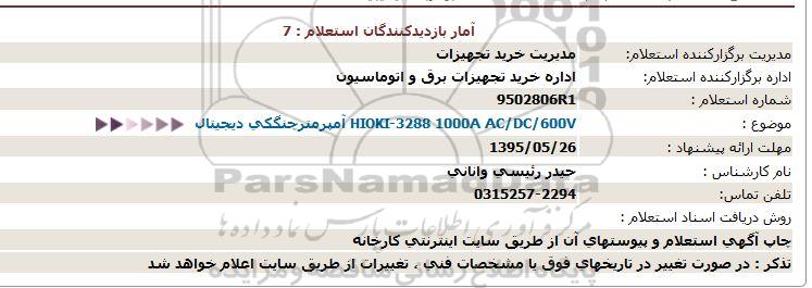 استعلام بها و موضوع استعلام استعلام , استعلام آمپرمترچنگکی دیجیتال به اطلاع کلیه شرکتها و افراد متخصص واجد شرایط میرساند، آگهی گذار در نظر دارد از طریق استعلام بها، نسبت به انتخاب و دریافت پیشنهادات اقدام نماید. این استعلام با کد آگهی ثبت شده در سامانه خبرگزاری پارس نماد : 710219 منتشر شده است. مشخصات استعلام : تاریخ شروع استعلام: 1395/05/25 آخرین مهلت ارسال پیشنهاد قیمت : 1395/05/26 و محل اجرای پروژه : استان اصفهان میباشد. استعلام قیمت مورد درخواست : استعلام , استعلام آمپرمترچنگکی دیجیتال با دستهبندیهای تخصصی و گروه های مرتبط : ابزار دقیق, تجهیزات برق و الکترونیک, استعلام اطلاع رسانی میگردد.