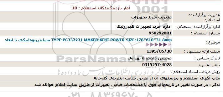 اداره برگزارکننده استعلام: اداره خرید تجهیزات هیدرولیک