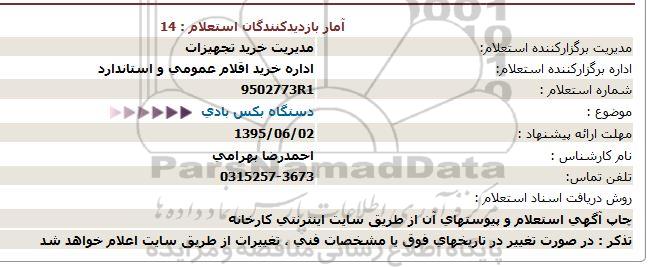 اداره برگزارکننده استعلام:     اداره خرید اقلام عمومی و استاندارد