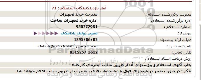 استعلام تعمیر رولیک بادامکی , استعلام تعمیر رولیک بادامکی
