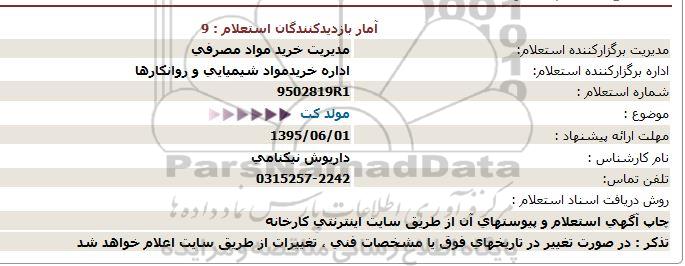 اداره برگزارکننده استعلام: اداره خریدمواد شیمیایی و روانكارها