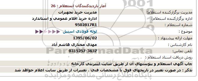 اداره برگزارکننده استعلام: اداره خرید اقلام عمومی و استاندارد