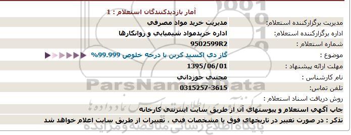 اداره برگزارکننده استعلام : اداره خرید مواد شیمیایی و روانکارها