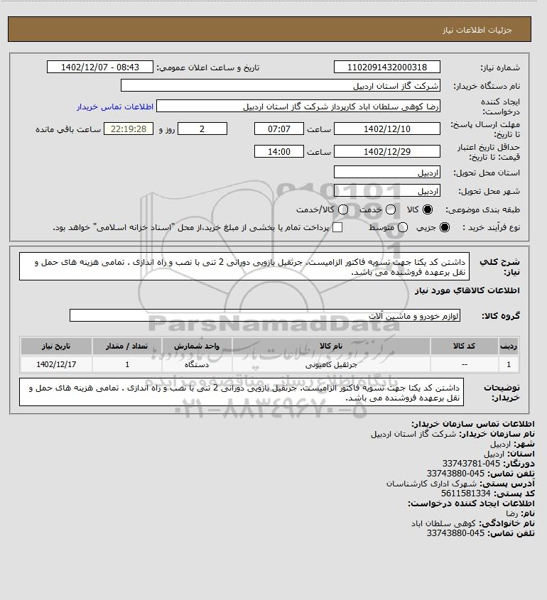 1 | -- | جرثقیل کامیونی | دستگاه | 1 | 1402/12/17 |