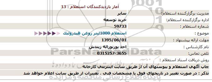 موضوع : استعلام 1000 لیتر روغن هیدرولیک