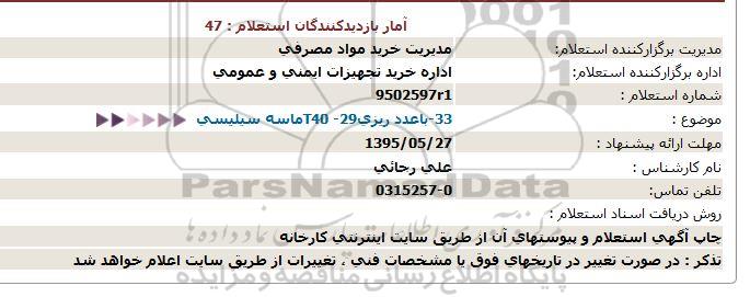 اداره برگزارکننده استعلام: اداره خرید تجهیزات ایمنی و عمومی