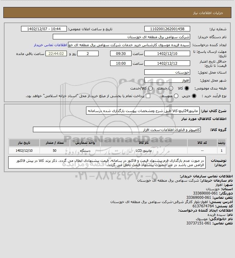 | 1 | -- | مانیتور LCD | دستگاه | 50 | 1402/12/10 |