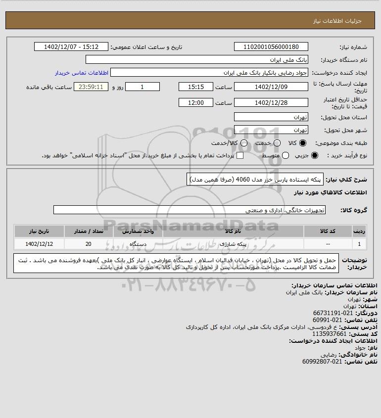 نام دستگاه خریدار:بانک ملی ایران