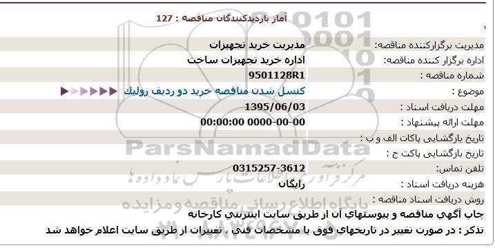 موضوع : کنسل شدن مناقصه خرید دو ردیف رولیک