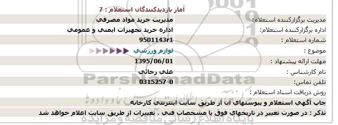 اداره برگزارکننده استعلام: اداره خرید تجهیزات ایمنی و عمومی
