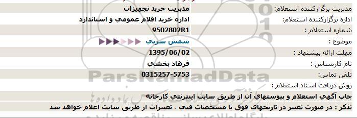 اداره برگزارکننده استعلام: اداره خرید اقلام عمومی و استاندارد