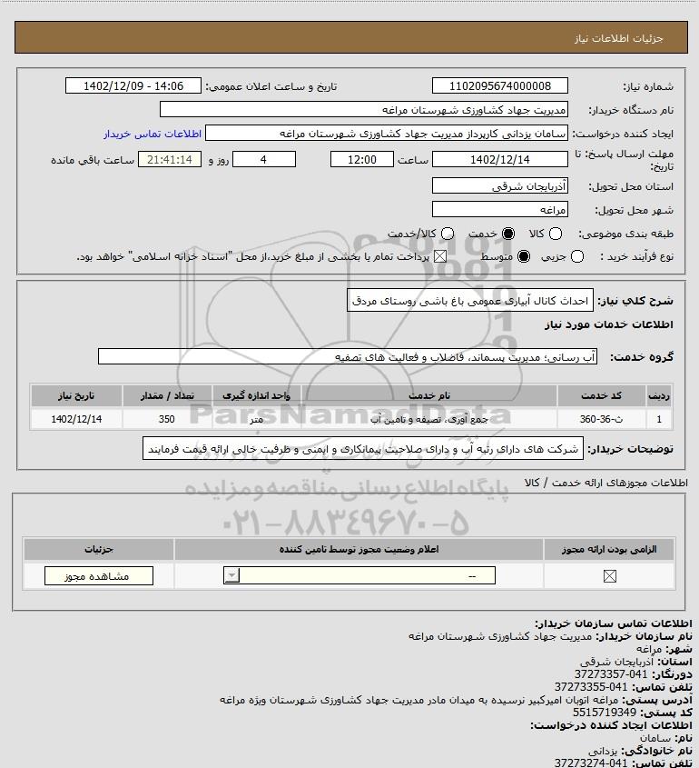 استعلام احداث کانال آبیاری عمومی باغ باشی روستای مردق, استعلام احداث کانال آبیاری عمومی باغ باشی روستای مردق