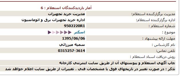 اداره برگزارکننده استعلام: اداره خرید تجهیزات برق و اتوماسیون