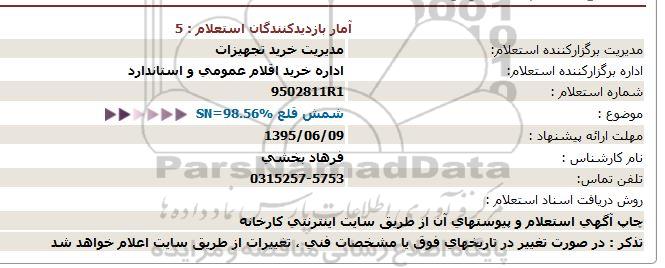 اداره برگزارکننده استعلام: اداره خرید تجهیزات ایمنی و عمومی