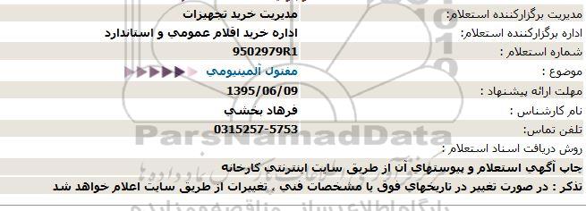 اداره برگزارکننده استعلام: اداره خرید اقلام عمومی و استاندارد
