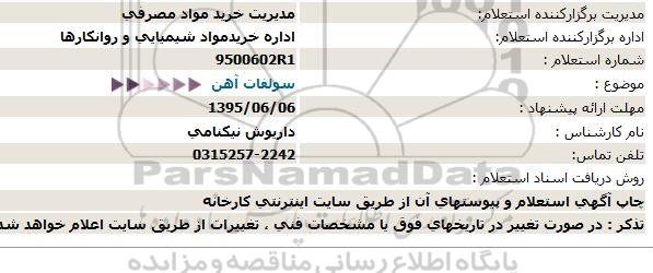 اداره برگزارکننده استعلام: اداره خریدمواد شیمیایی و روانكارها