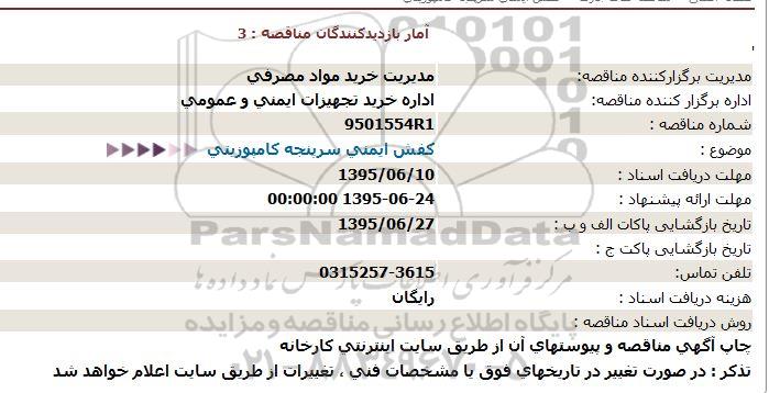 اداره برگزار کننده مناقصه: اداره خرید تجهیزات ایمنی و عمومی