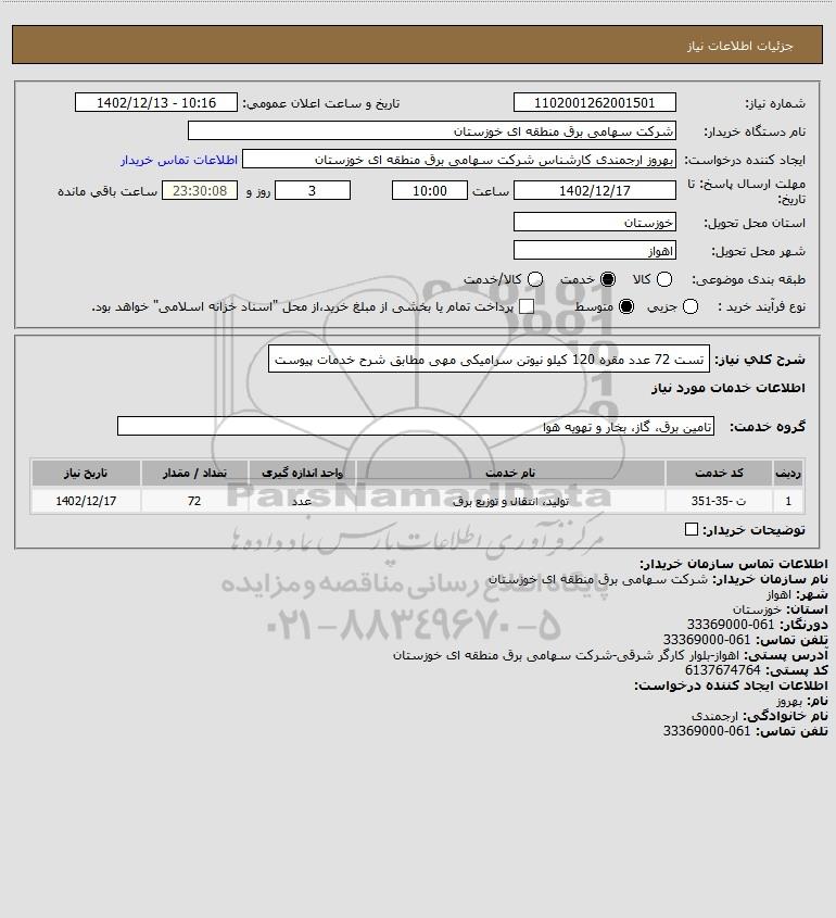 نام سازمان خریدار: شرکت سهامی برق منطقه ای خوزستان