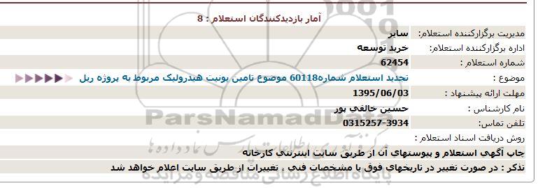 تجدید استعلام شماره60118 موضوع تامین یونیت هیدرولیک مربوط به پروژه ریل , تجدید استعلام شماره60118 موضوع تامین یونیت هیدرولیک مربوط به پروژه ریل