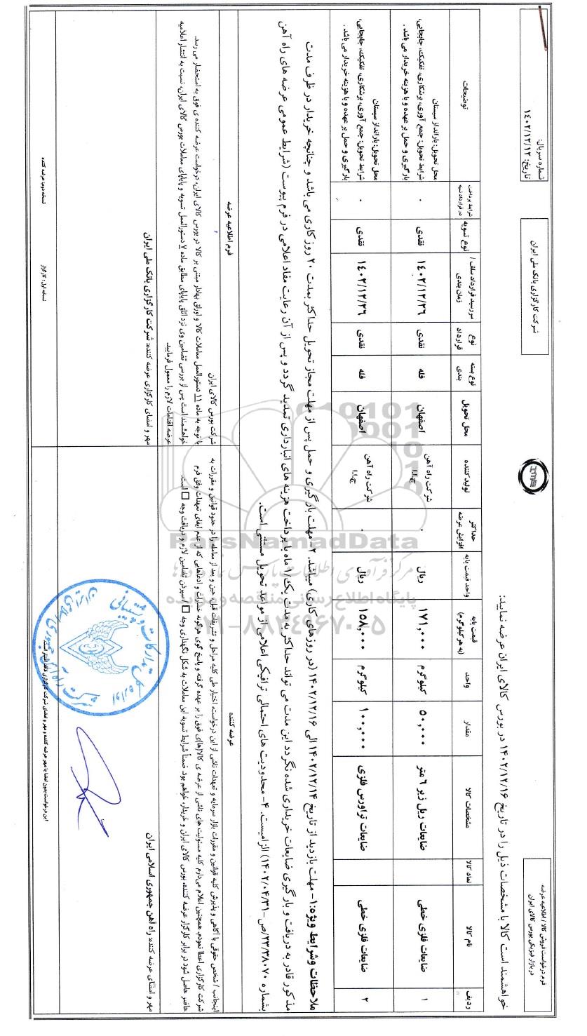 خواهشمند است کالا با مشخصات ذیل را در تاریخ 1402.12.16 در بورس کالای ایران عرضه نمایید:
