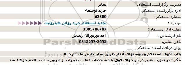 موضوع : تجدید استعلام خرید روغن هیدرولیک