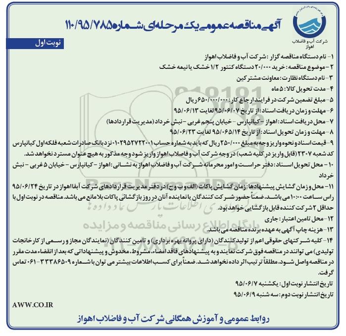 1. نام دستگاه مناقصه گزار: شرکت آب و فاضلاب اهواز