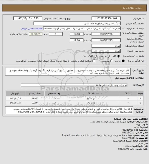 | 2 | -- | کارت PC | عدد | 2,000 | 1403/01/25 |