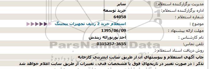 موضوع : استعلام خرید 2 ردیف تجهیزات پیجینگ