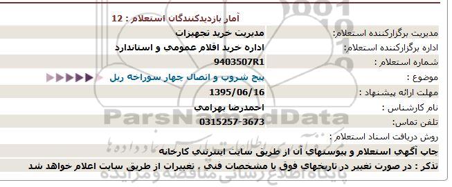 استعلام پیچ شروپ و اتصال چهار سوراخه ریل, استعلام, استعلام پیچ شروپ و اتصال چهار سوراخه ریل