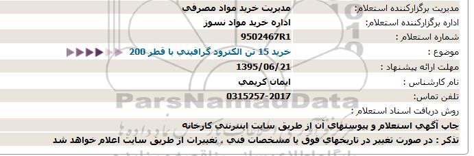 موضوع : خرید 15 تن الكترود گرافیتی با قطر 200