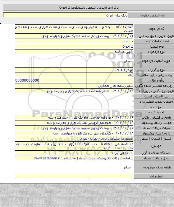 پارس نماد داده ها، خبرگزاری مناقصات و مزایدات کشور