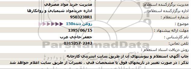 اداره برگزارکننده استعلام:     اداره خریدمواد شیمیایی و روانكارها