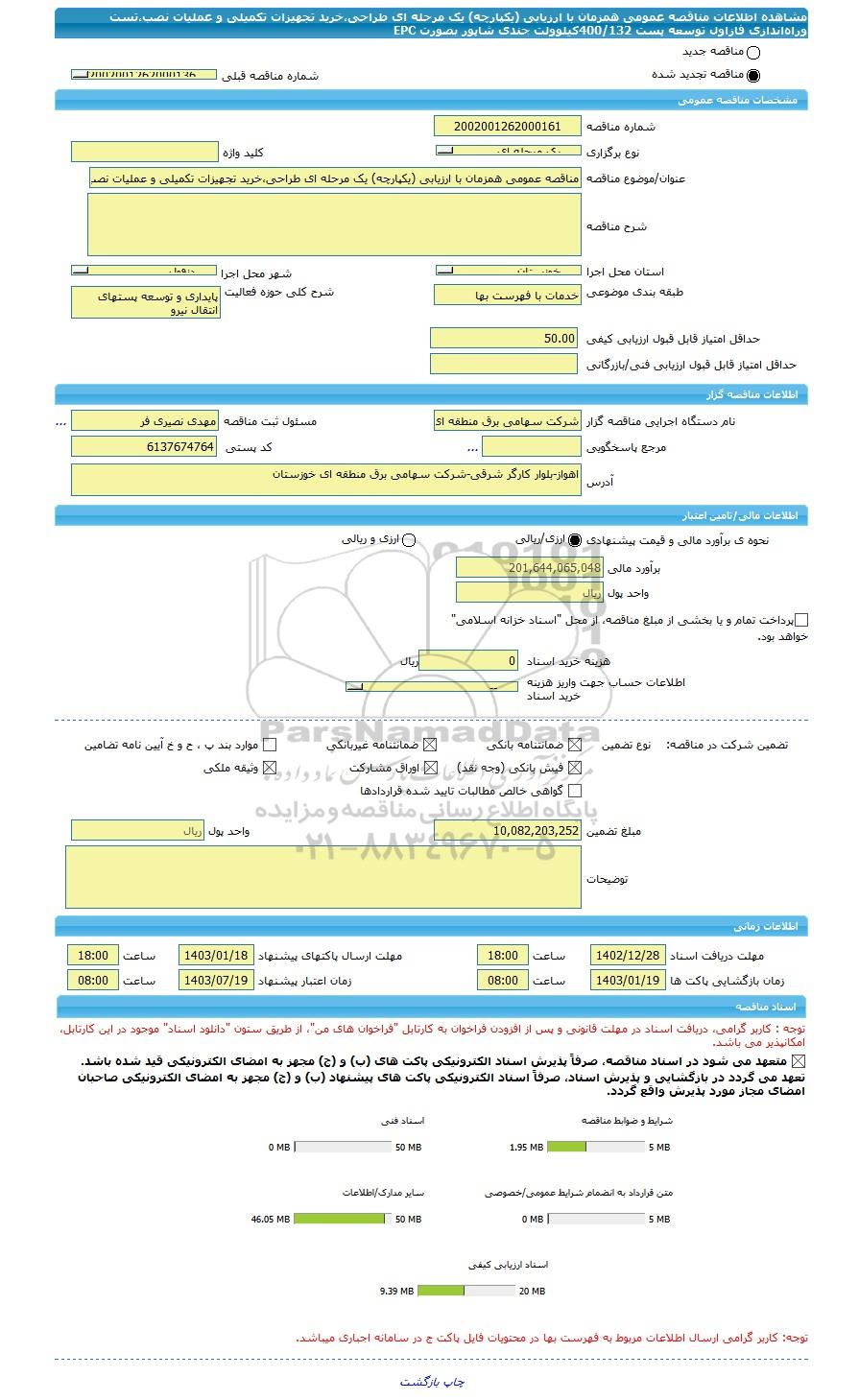 | مبلغ تضمین | 10,082,203,252 | واحد پول | ریال |