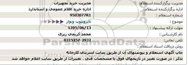 اداره برگزارکننده استعلام: اداره خرید اقلام عمومی و استاندارد