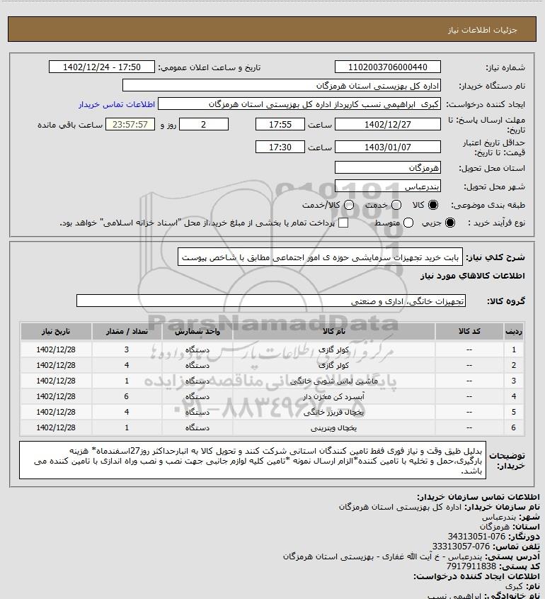 نام دستگاه خریدار:اداره کل بهزیستی استان هرمزگان