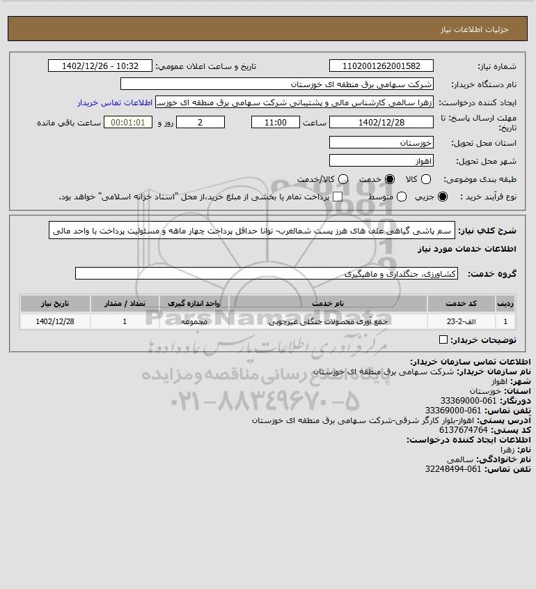 شرح کلی نیاز: سم پاشی گیاهی علف های هرز پست شمالغرب- توانا