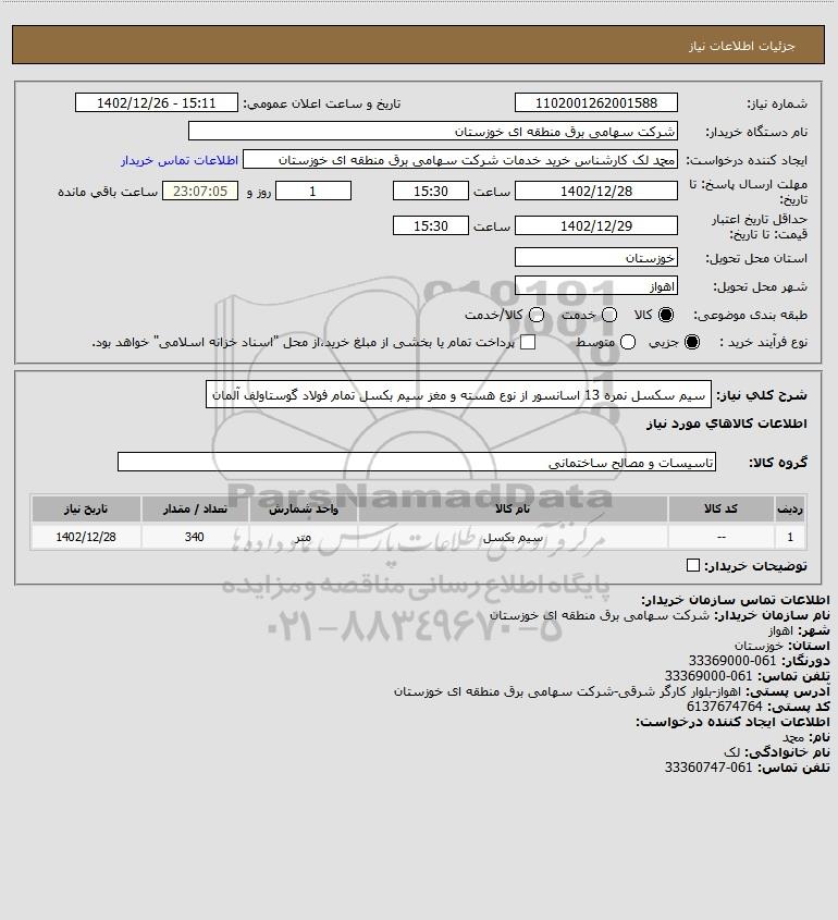 | 1 | -- | سیم بکسل | متر | 340 | 1402/12/28 |