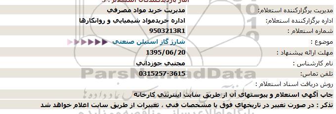 استعلام شارژ گاز استیلن صنعتی, استعلام, استعلام شارژ گاز استیلن صنعتی