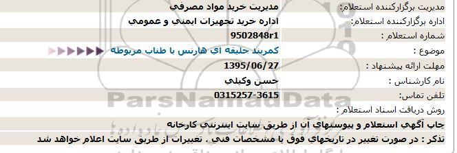 اداره برگزارکننده استعلام: اداره خرید تجهیزات ایمنی و عمومی