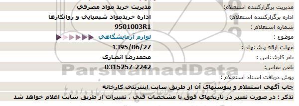 استعلام لوازم آزمایشگاهی, استعلام ،استعلام لوازم آزمایشگاهی