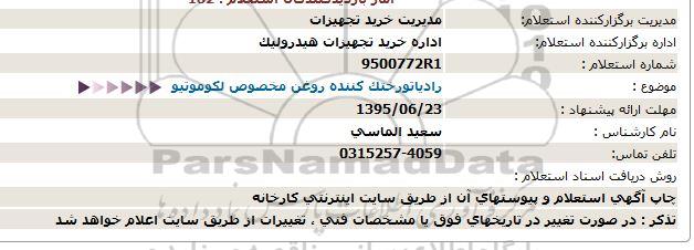 اداره برگزارکننده استعلام: اداره خرید تجهیزات هیدرولیک