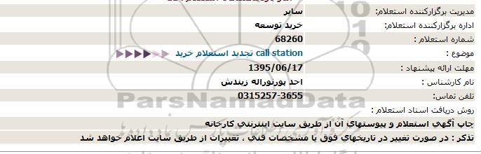 استعلام بها و موضوع استعلام استعلام ، استعلام خرید call station به اطلاع کلیه شرکتها و افراد متخصص واجد شرایط میرساند، آگهی گذار در نظر دارد از طریق استعلام بها، نسبت به انتخاب و دریافت پیشنهادات اقدام نماید. این استعلام با کد آگهی ثبت شده در سامانه خبرگزاری پارس نماد : 721295 منتشر شده است. مشخصات استعلام : تاریخ شروع استعلام: 1395/06/16 آخرین مهلت ارسال پیشنهاد قیمت : 1395/06/17 و محل اجرای پروژه : استان اصفهان میباشد. استعلام قیمت مورد درخواست : استعلام ، استعلام خرید call station با دستهبندیهای تخصصی و گروه های مرتبط : تجهیزات مخابرات, تلفن سانترال, استعلام اطلاع رسانی میگردد.