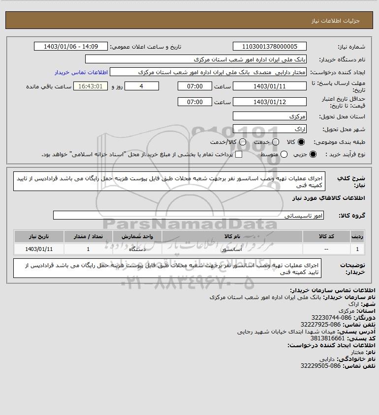 نام دستگاه خریدار:بانک ملی ایران اداره امور شعب استان مرکزی
