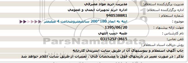 اداره برگزارکننده استعلام: اداره خرید تجهیزات ایمنی و عمومی