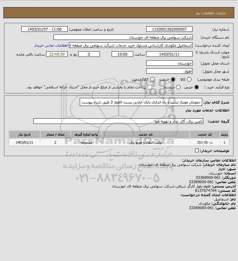 نام دستگاه خریدار:شرکت سهامی برق منطقه ای خوزستان