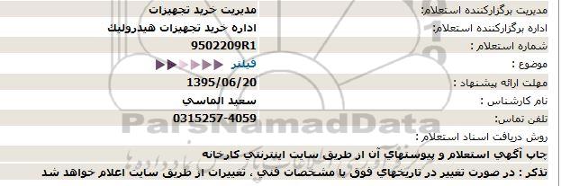 اداره برگزارکننده استعلام: اداره خرید تجهیزات هیدرولیک