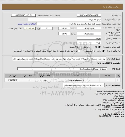 نام دستگاه خریدار:مرکز امار ایران
