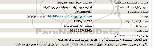 استعلام اسید سولفوریک صنعتی , استعلام , استعلام اسید سولفوریک صنعتی