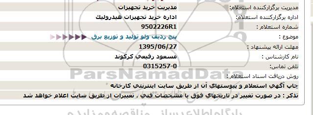 استعلام پنج ردیف ولو تولید و توزیع برق , استعلام , استعلام پنج ردیف ولو تولید و توزیع برق