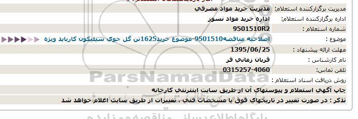 موضوع : اصلاحیه مناقصه 9501510 خرید 1625 تن گل جوی سیلیکون کارباید ویژه